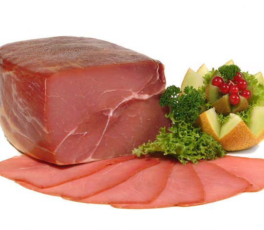 Luchtgedroogd gedurende 4 maanden. Daarna licht gerookt. Lekker met meloen.